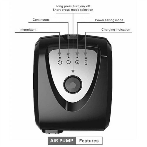 Features: Three working modes: continuous/intermittent/power saving mode It contains a rechargeable lithium battery, it can be charged by solar energy or DC/AC power, Lithium batteries can also operate automatically for 24 hours in the event of a power outage. 3.5W solar panel can convert light energy into electric energy, it works better when the sunlight is intenser, it's energy-saving and eco-friendly to use. Long press to turn on/ off the air pump, short press to choose mode. 3 modes for selection according to practical use: continuous/ intermittent/ power saving mode. Dual air flow pipe with dual air bubble stone provide total 2.4L flow per minute for more even and pervasive air distribution, thus bringing excellent water circulation. Perfect for adding oxygen into various aquariums, fish tank, pools and small ponds, especially suitable for wild fish and small amounts of aquatic transportation oxygen increasing. Rechargeable design, 4400mAh large capacity battery, fits for both home and outdoor use, effectively solving the problem of fish being starved of oxygen when the power goes off. Easy to use, just put the air stones in the water and install the solar panel, the pump will start to work in seconds once exposed to sufficient sunlight. Suction cups in the back of the pump help it tightly stuck to the surface of the fish tank. Besides, it comes with complete accessories for easy carrying or hanging on the wall. Made of high-quality material, not easy to break or deform, durable to use, long lifespan. Low noise, quiet to use, will not disturb sleep or work. Note: Size and colour may be slightly different due to manual measurement and different lighting conditions. Thanks for understanding. Specifications: