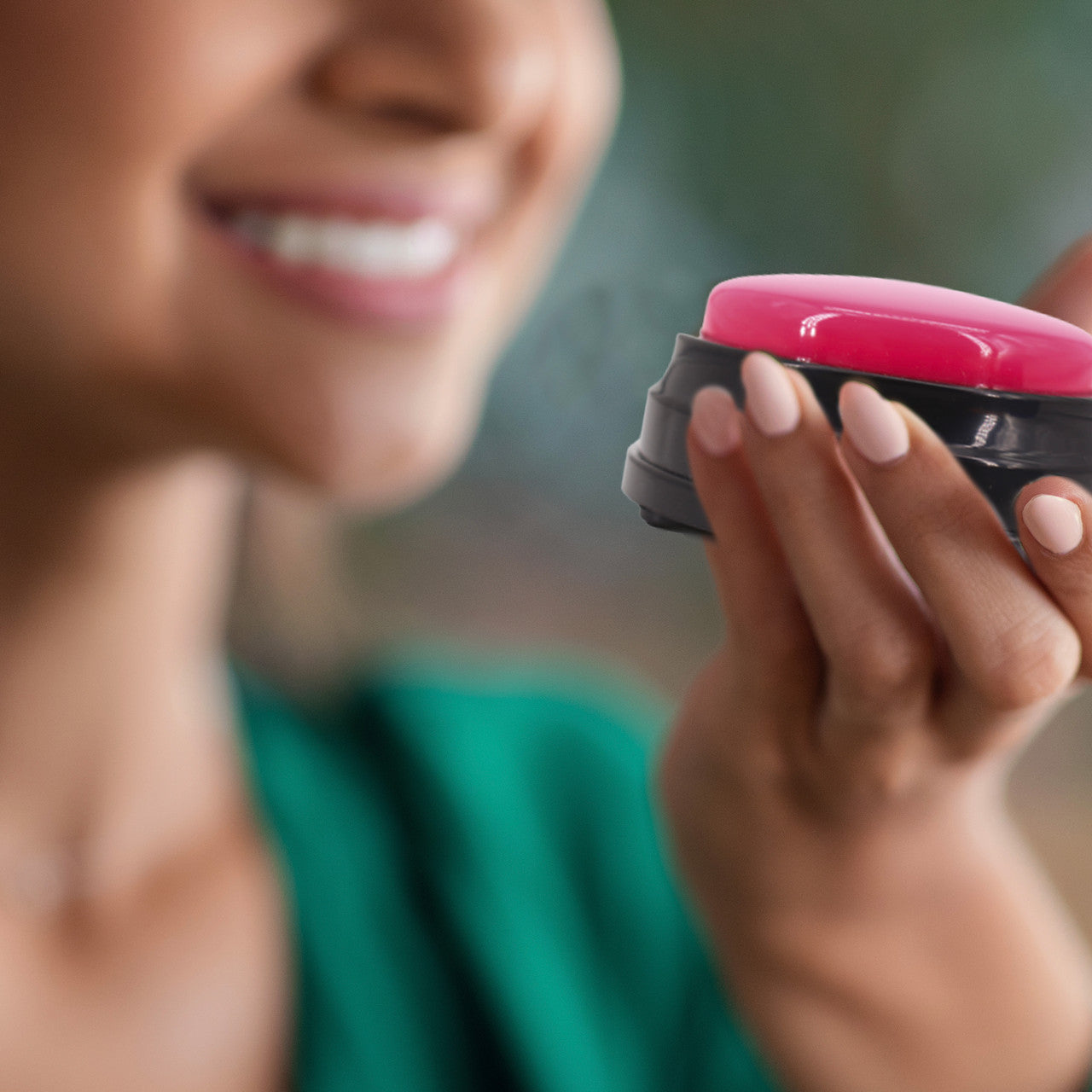 - Includes 4 buttons in Pink, Orange, Green, and Light Blue