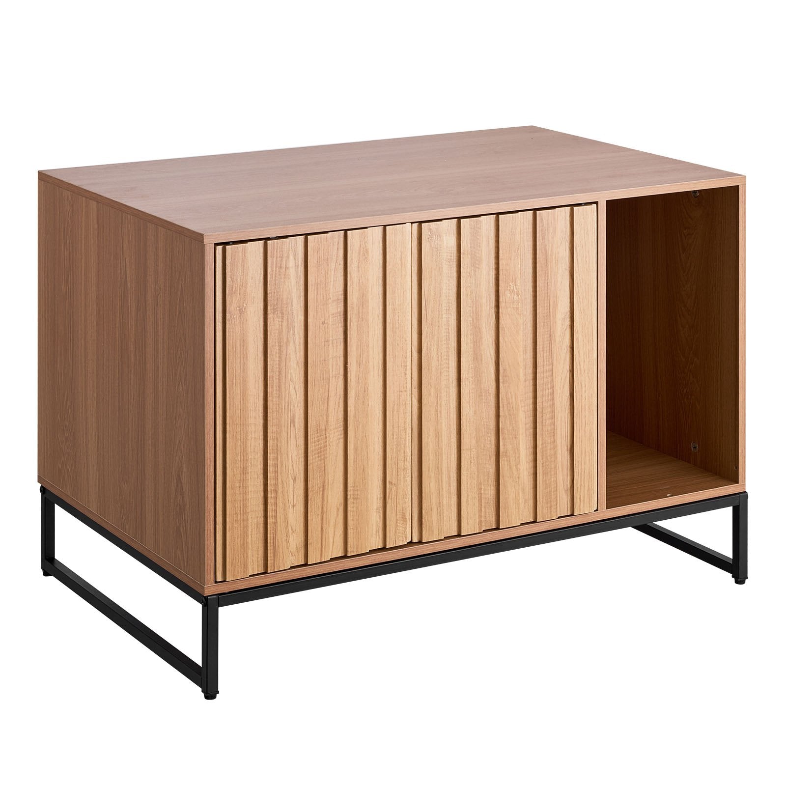 The cat litter furniture hidden serves as storage tables, bedside tables, coffee tables, entryway cabinets, or cat resting areas. The wood-textured wave-grooved door panel with black metal legs easily blends into various home styles