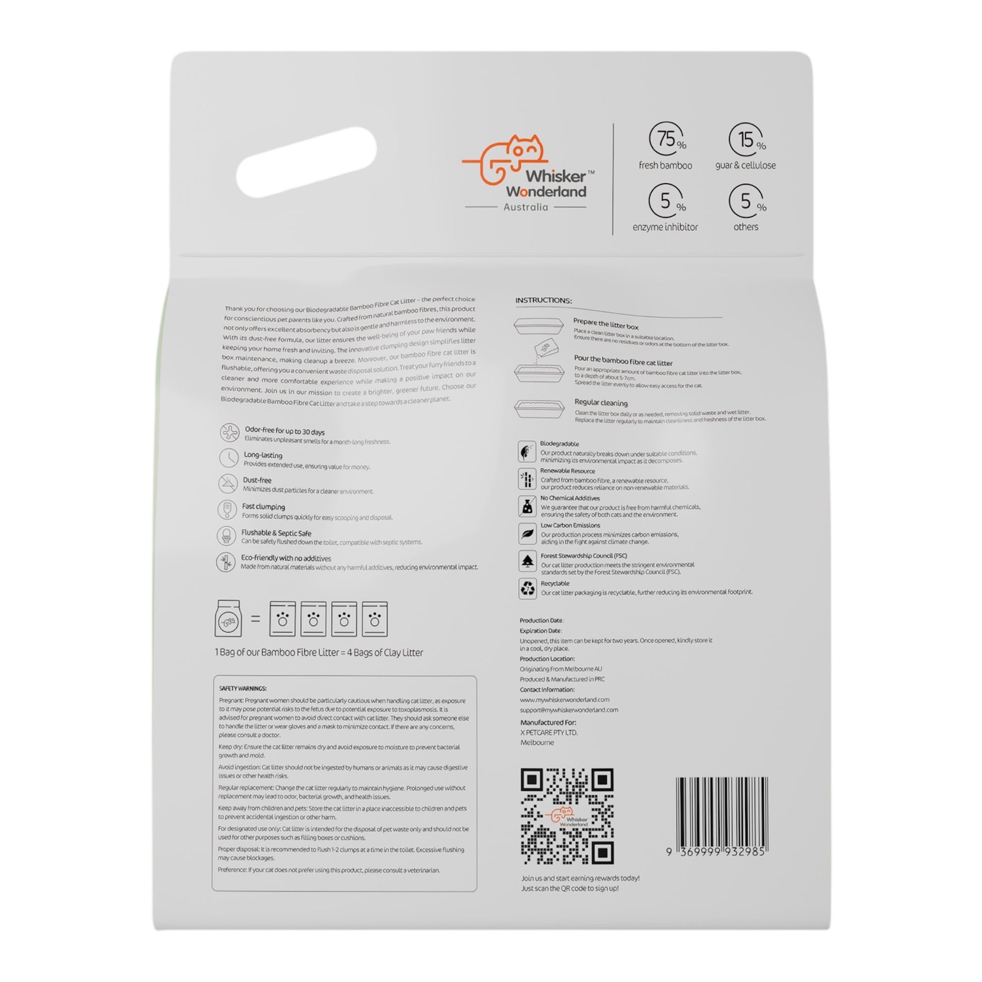 Whisker Wonderland Biodegradable Bamboo Fibre Cat Litter (4KG Full Box - 4 x 4KG Bags)Share