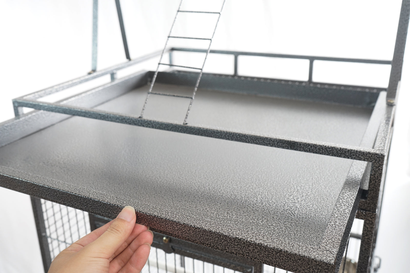 Taking care of bird is made easy with one large access door and two side doors to reach inside the five food and water bowls and take them out for refilling or cleaning. Cleaning is hassle-free with the slide-out top and bottom tray that can also be removed.