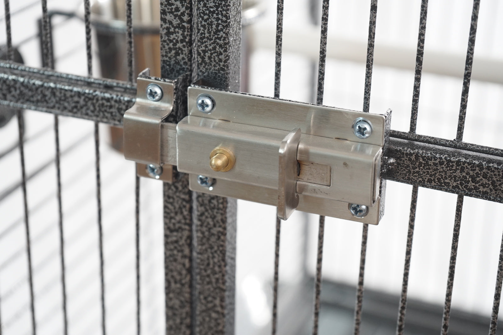 Our cage is made from good quality wrought iron and the durable metal cage uses a non-toxic powder-coated finish for total eco-friendliness to man and bird.