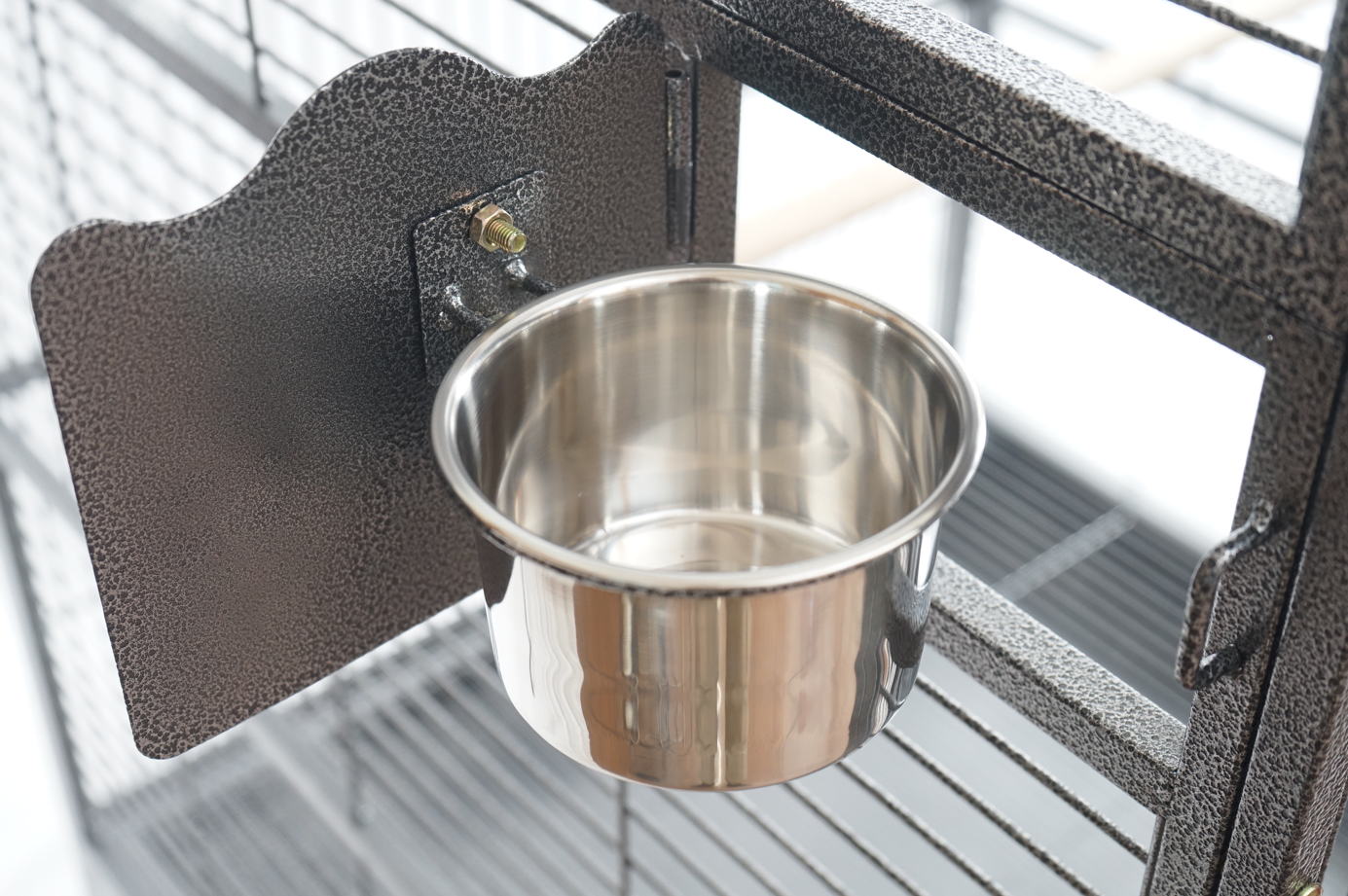 Taking care of them is made easy too with one large access door and four side doors to reach inside four food and water bowls and take them out for refills or cleaning. Cleaning is hassle-free with the slide-out top and bottom tray that can also be removed. And your feather friends will feel extremely safe too with a set of secured locks to keep prying predators away.